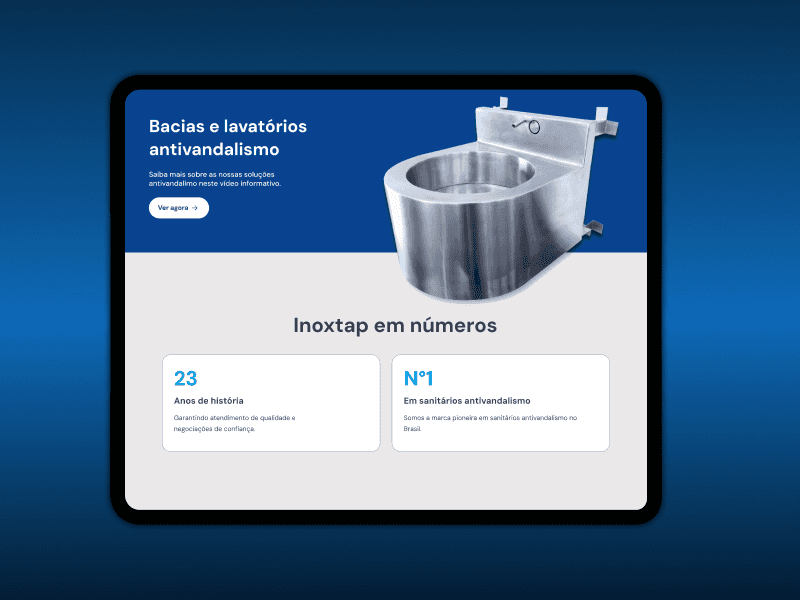 PT/BR | O site da Inoxtap foi desenvolvido na Buuk Analítica e Design. O site apresenta os produtos em formato de e-commerce, proporcionando uma experiência de navegação clara e acessível. Este projeto marcou uma das minhas primeiras experiências com web design, oferecendo liberdade criativa significativa para explorar soluções visuais e design de interface enquanto atendia aos objetivos comerciais do cliente.